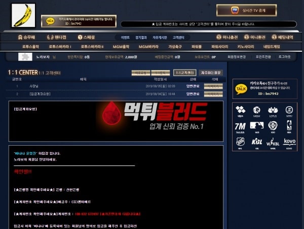 안녕하세요 먹튀근절 대표주자 먹튀블러드 입니다. 항상 먹튀사이트 및 검증되지 않은 신생사이트들이 존재합니다. 이에 맞서 먹튀블러드는 이러한 이용자분들께 베팅문화적 피해를 당하지 않도록 믿을 수 있고 신뢰할수 있는 보증된 검증업체 PR(public relations)을 등록하겠습니다. 이번 먹튀사이트는 바나나사이트 입니다.